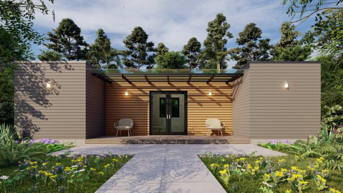 Discover the “Meadow View,” designed for individuals seeking to create a one-of-a-kind container home. With 657 sq. ft. of total floor space, including 417 sq. ft. of interior living space, this charming design offers 2 comfortable bedrooms and 2 bathrooms, all expertly arranged within 3 shipping containers.