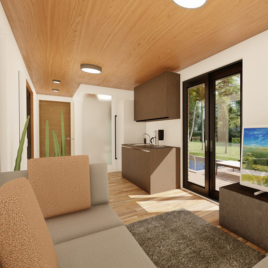 The Cove is designed with your comfort in mind, with an open living area and a bedroom that includes glass doors leading directly out to the pool. Add in the bathroom and a well-equipped kitchen, and you have everything you need to live comfortably without breaking the bank.